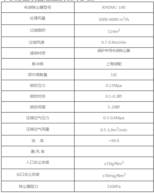 一、燃煤鍋爐布袋除塵器技術參數(shù):