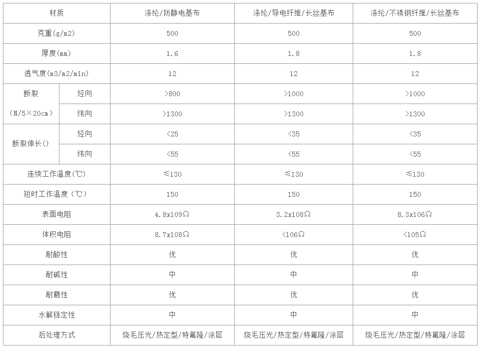 抗靜電滌綸針刺氈除塵布袋參數(shù):