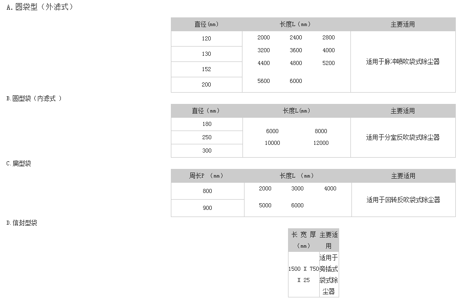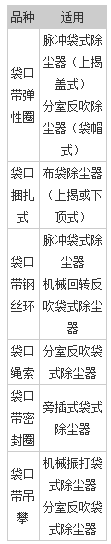 除塵布袋/濾袋是脈沖袋式除塵器運行過程中的心臟,常圓筒型的脈沖式濾袋垂直地懸掛在除塵器中含塵氣體由進風(fēng)口進入除塵器,經(jīng)過灰斗的導(dǎo)流板,使氣體中的部分大顆粒粉塵受慣性力的作用被分離出來,直接落入灰斗。含塵氣體進入箱體的濾袋過濾區(qū),絕大多數(shù)粉塵被捕集在濾袋的外表面,而干凈氣體過濾料進入濾袋內(nèi)部,凈化后的氣體經(jīng)過濾袋口進入上箱體后,再由出風(fēng)口排出.濾袋內(nèi)部的籠架用來支撐濾袋,防止濾袋時它助于塵餅的清除和重新分布。